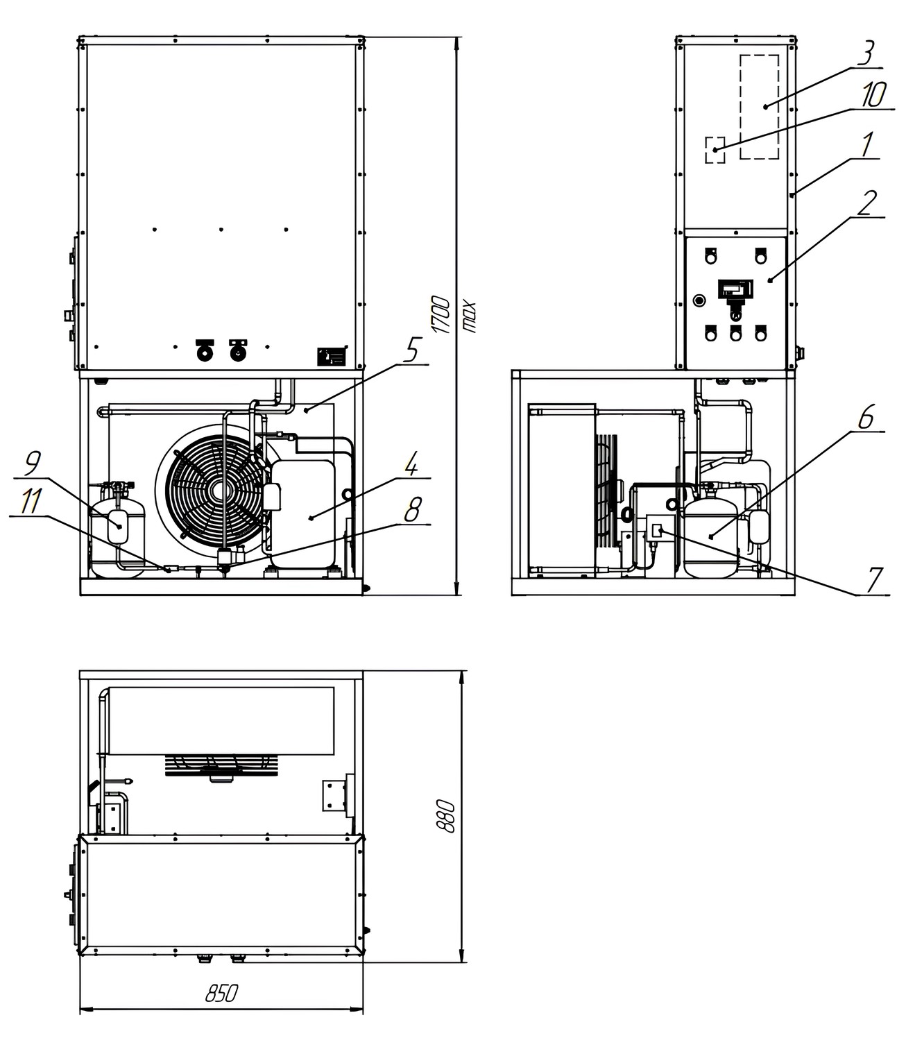 Габаритные размеры, мм, не более912 х 800 х 600 (h)850 х 880 х 1700 (h)