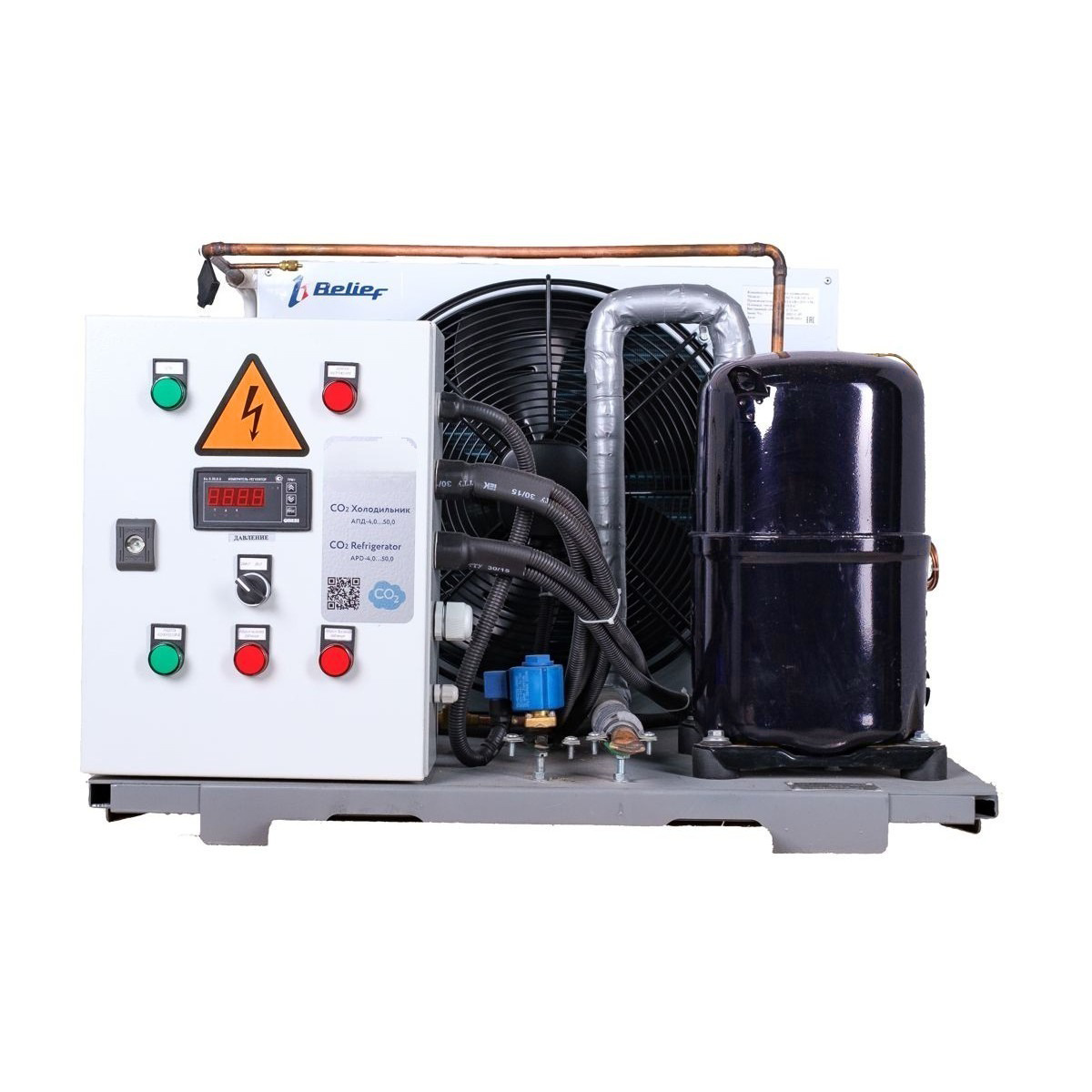 Агрегат работает в автономном режиме без участия оператора. Он сохраняет работоспособность в широком температурном диапазоне от -40°С до +40°С и может устанавливаться как внутри помещений, так и на улице под навесом. Для запуска требуется только подключение к электросети и соединение с коммуникациями резервуара СО₂.