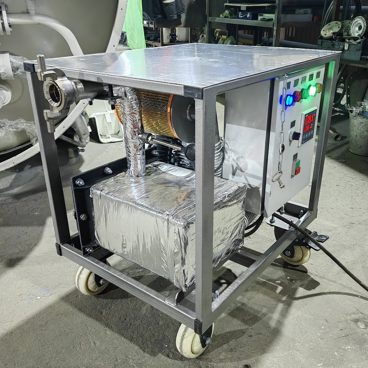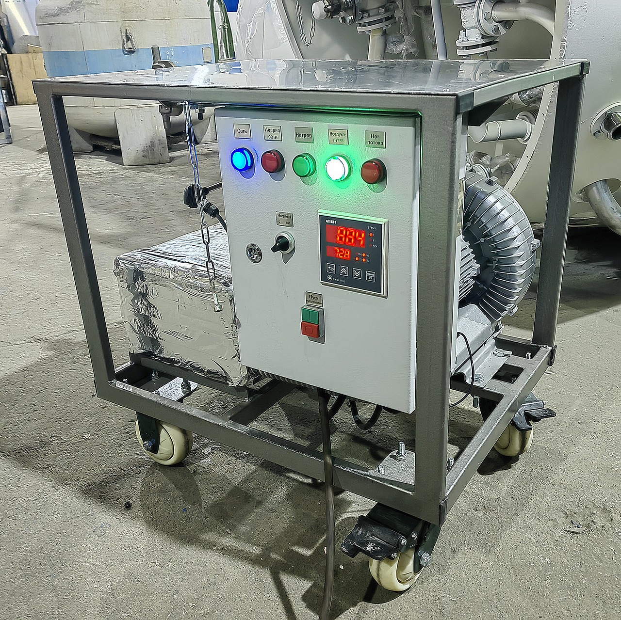 УОР-1 это установка отогрева резервуаров, решение для экстренного или планового обслуживания криогенного оборудования с жидкими криопродуктами: резервуары РДХ, цистерны ЦТК, газификаторы ГХК. Конструктивно УОР-1 выполнена как мобильный тепловой модуль. Функциональные узлы размещены на антикоррозийной раме на колесиках: это позволяет эксплуатировать установку в условиях химических производств и открытых криогенных станций. Оборудование предназначено для работы с трехфазной сетью 380 В, что обеспечивает высокий крутящий момент воздуходувки 2.2 кВт.